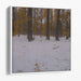 Introducing 'Frost-Kissed Fall Foliage,' a mesmerizing canvas art print that transports viewers into a tranquil winter woodland, where the stark beauty of snow-covered trees meets the warm nostalgia of autumn leaves. This captivating artwork captures the essence of a serene winter forest scene, inviting contemplation and evoking a sense of peaceful solitude.