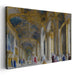 Step into a world of regal opulence with "Gilded Archways Symphony," a captivating canvas art piece that transports viewers to the luxurious grandeur of European courts. This masterpiece presents a breathtaking view of a lavish palace interior, featuring towering golden arches and a splendid blue ceiling adorned with intricate frescoes that evoke a sense of grandeur and opulence.