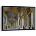 The grand hallway depicted in the artwork is a symphony of luxury, with golden columns that stand majestically, reflecting light and casting a divine glow over the scene. The detailed geometric patterns on the floor lead the eye through the corridor filled with elegantly dressed figures, hinting at a significant event or a festive gathering of nobility.