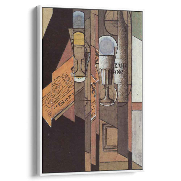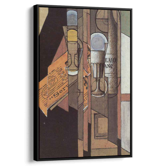 Unveil the enigmatic world of Juan Gris's "Glasses, Newspaper, and Bottle of Wine" (c. 1913), a groundbreaking masterpiece that shattered the conventions of representation. This meticulously crafted canvas print invites you to immerse yourself in the fragmented and multifaceted reality that Gris so ingeniously depicted.
