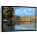 Introducing 'Gossamer Castle Gardens,' a captivating canvas art piece that transports viewers to the serene beauty of a classical European palace mirrored in the tranquil waters of a grand pond. This exquisite artwork meticulously captures the architectural splendor of the palace, adorned with intricate statues and columns that exude elegance.