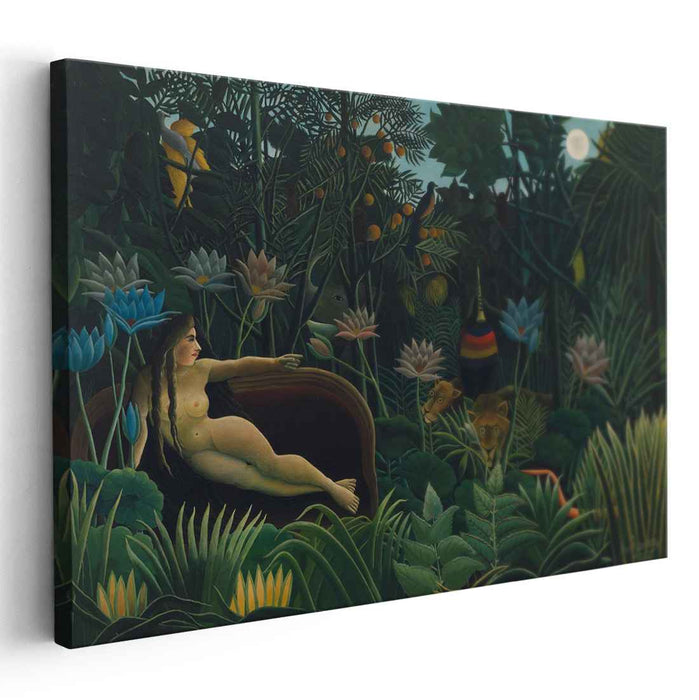 Step into the captivating world of Henri Rousseau's "The Dream," an iconic masterpiece that invites viewers on a surreal and enchanting journey. Painted in 1910, this enigmatic artwork is now available as a high-quality canvas print, allowing you to immerse yourself in its dreamlike atmosphere.