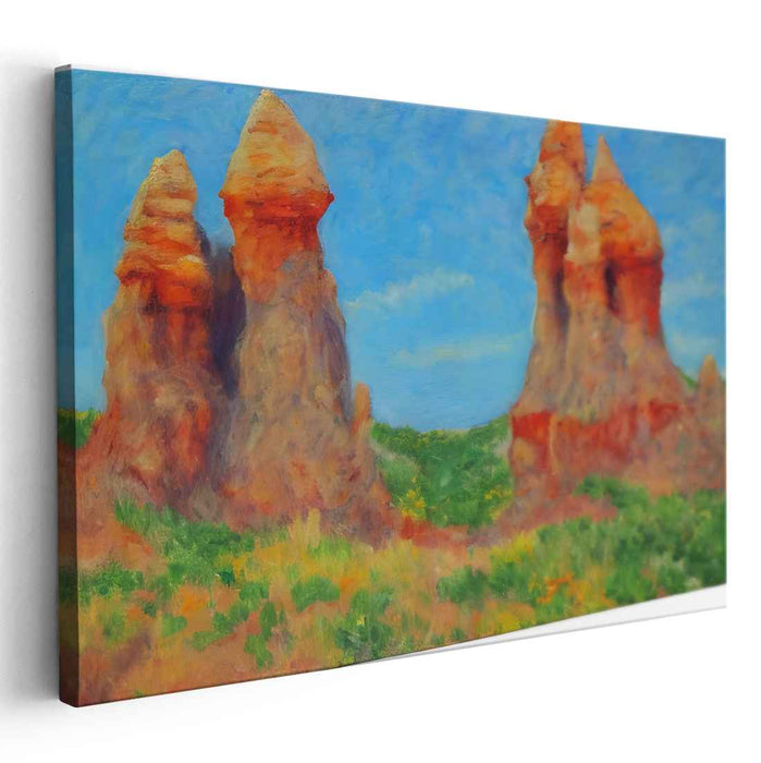 Decorate your walls with this high quality Impressionism Hoodoo formations art print on canvas. Whether you hang it in your living room, bedroom or office, this artwork is sure to add a touch of beauty and color to your room.