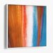 The canvas is dominated by a bold, fiery orange that transitions seamlessly into a deep, rich blue, creating a visually arresting contrast. Splashes of white, red, and purple interspersed throughout the composition add layers of depth and intricacy, inviting the eye to dance across the canvas and discover new nuances with each gaze.