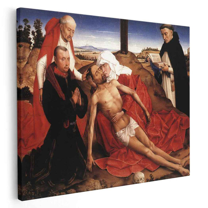 Discover the multifaceted beauty of Rogier van der Weyden's "Lamentation" (1441), an awe-inspiring masterpiece now available as an exquisite canvas print. Immerse yourself in the profound sorrow and unparalleled artistry that define this pivotal work of the Early Netherlandish Renaissance.