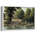Introducing 'Lotus Pavilion Reverie,' a captivating canvas art print that transports viewers to a tranquil lakeside setting reminiscent of traditional Chinese landscapes. This exquisite artwork intricately portrays a serene lake teeming with small boats and people, framed by lush greenery and majestic traditional architecture. At the heart of the painting lies a meticulously detailed pavilion, gracefully nestled under the sprawling branches of a grand tree.
