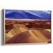 Introducing the captivating "Majestic Desert Dunes," a serene landscape canvas art print that transports viewers to a mesmerizing desert scene, where undulating dunes meet majestic mountains in a symphony of colors and textures. This artwork captures the essence of tranquility and grandeur, inviting contemplation and awe.