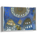 Introducing 'Majestic Dome: Intricate Blue and Gold Architectural Interior,' a mesmerizing canvas art print that transports viewers into the lavish and meticulously detailed interior of a majestic architectural marvel, reminiscent of a grand cathedral or mosque. This artwork captures the essence of opulence and tranquility within a sacred space, focusing on a spectacularly detailed dome adorned with intricate patterns and shimmering gold accents that play with light to create a truly breathtaking visual spectacle.