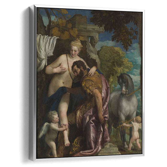 Veronese's exceptional talent is evident in his masterful use of color and light. The painting bursts with vibrant hues, from the deep reds of Mars' armor to the delicate pinks and blues of Venus' gown. Veronese's skillful handling of light and shadow creates a sense of depth and movement, bringing the figures to life.