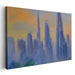 Introducing 'Misty Metropolis: Dreamy Urban Skyline in Blue and Orange,' a mesmerizing canvas art print that transports viewers into a cityscape shrouded in a mystical mist. This captivating artwork showcases a skyline of skyscrapers reaching towards the heavens, their silhouettes softened by the ethereal fog that envelopes them.