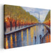 Introducing 'Moonlit Seine Serenade: Parisian Evening by the Seine,' a mesmerizing canvas art that encapsulates the romantic allure of Paris at dusk, focusing on a serene scene along the Seine River with the iconic Eiffel Tower gracing the background. This enchanting artwork portrays a tranquil twilight ambiance, where the sky transitions from soft blues to the warm glow of street lamps lining the riverbanks, casting a captivating reflection on the calm waters.