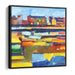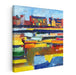 Introducing 'Mosaic Kingdom: Vibrant Abstract Landscape,' a mesmerizing canvas art print that transports viewers into a bustling harbor teeming with vibrant colors and dynamic energy. This captivating artwork presents a bold, abstract interpretation of a harbor scene, featuring a kaleidoscope of colorful buildings reflecting in the shimmering waters.