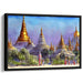 Introducing 'Mystic Temples Dance in Rain,' a mesmerizing canvas art piece that whisks viewers away to the serene and spiritual realm of an ancient temple complex, likely influenced by Southeast Asian architectural wonders. This captivating artwork is a symphony of majestic stupas and pagodas, their golden spires soaring towards a vibrant, azure sky, creating a scene brimming with divine grandeur and tranquility.