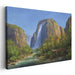 Introducing 'Natural Perspectives,' a captivating canvas art piece that transports viewers to a realm of awe and tranquility, showcasing the grandeur of a cascading waterfall amidst a serene landscape. The artwork masterfully captures a towering cliff adorned with lush, verdant foliage, from which the waterfall cascades dramatically into a misty blue pool below.