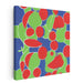 Introducing "Neon Apple Symphony," a vibrant canvas art print that will infuse your space with a playful and modern charm. This captivating artwork features an abstract arrangement of fruit shapes, predominantly showcasing apple-like forms in a delightful and repetitive pattern.