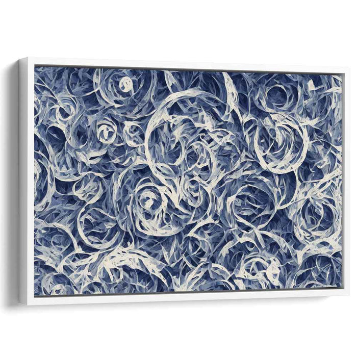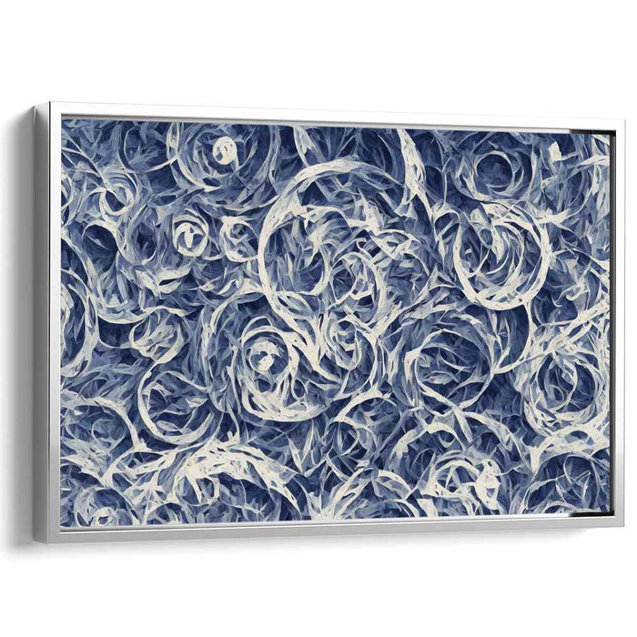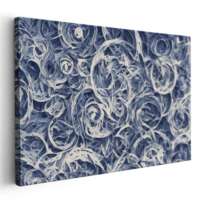 Immerse yourself in the captivating world of "Ocean Whirl: Dynamic Abstract Blue and White Canvas Art Print," a mesmerizing masterpiece that enchants with its intricate patterns and dynamic forms. This artwork, dominated by deep, rich blues juxtaposed with striking whites, evokes a sense of movement and fluidity akin to the swirling depths of an ocean or the dynamic patterns of a stormy sky.