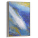 The primary color of blue is complemented by cascading touches of white, resembling a waterfall or bursts of light, infusing the artwork with energy and vibrancy. Subtle hints of yellow and green peek through the blue, adding layers of depth and complexity to the composition. The abstract style of the artwork focuses on color, texture, and movement, with no defined forms, inviting viewers to immerse themselves in its fluidity.