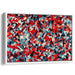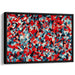 Introducing "Opposing Forces Merge," an electrifying abstract red and blue canvas art print that orchestrates a visual masterpiece of fragmented shapes and vibrant colors, captivating viewers with its dynamic and engaging composition. This artwork commands attention with its bold use of primary colors, where striking reds dance harmoniously with cool blues, crisp whites, and deep blacks on the canvas.