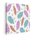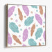 Introducing "Pastel Playtime Symphony: Playful Pastel Pattern Canvas Art Print," a delightful artwork that invites you into a whimsical world of intricate feathers and playful spirals, creating a captivating visual delight. The centerpiece of this piece is the meticulously detailed feathers, presented in soft pastel tones of lavender, teal, and muted brown, interspersed with charming spiral motifs that infuse a sense of movement and whimsy into the composition.