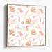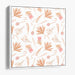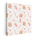 Introducing 'Petals in Symmetry,' a mesmerizing canvas art print that embodies a delicate and peaceful aesthetic, showcasing a charming pattern of botanical elements in soft pastel hues. This artwork features a delightful array of stylized leaves, flowers, and sprigs, meticulously illustrated with clean lines and subtle shading, creating a serene and tranquil ambiance.
