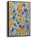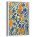 Introducing 'Petals of Colorful Jazz: Henri Matisse Inspired Floral Tapestry,' a lively and vibrant canvas art print that brings a fresh perspective to floral art with its bold and expressive brushwork. This captivating artwork showcases a delightful interplay of blue and green foliage adorned with striking orange blooms, forming a dynamic composition that immediately captivates the viewer's gaze.