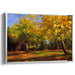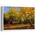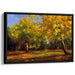 The canvas art 'Radiant Horizon Sketch' presents a rich autumnal palette, with primary colors of golden yellow dominating the scene, complemented by secondary hues of green, brown, and orange. This harmonious blend of colors captures the essence of the fall season, evoking warmth, comfort, and the beauty of nature's transformation.