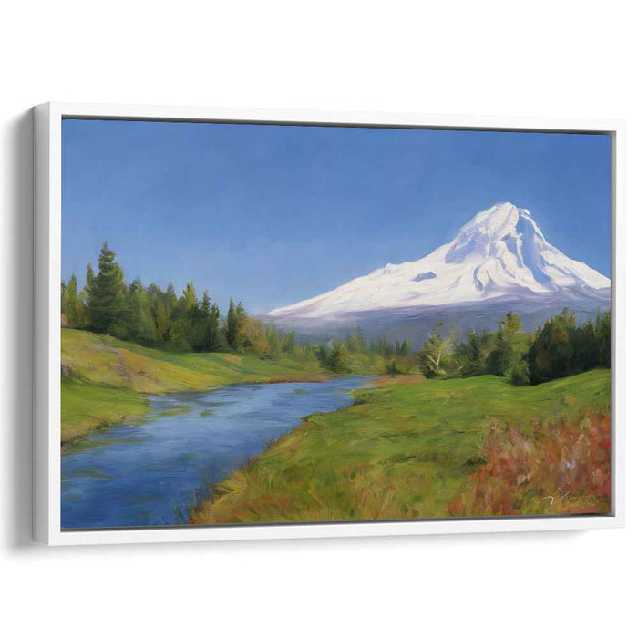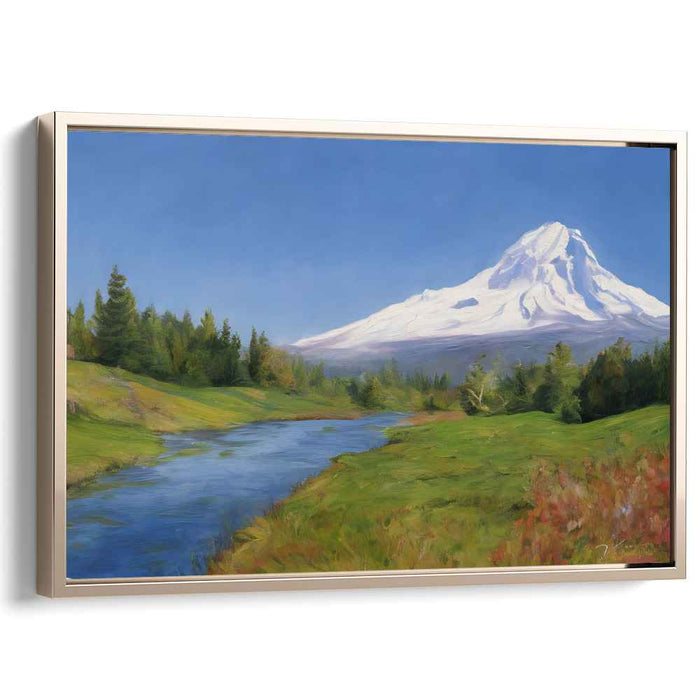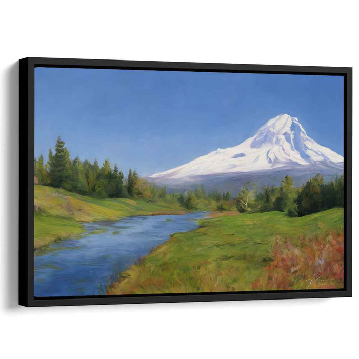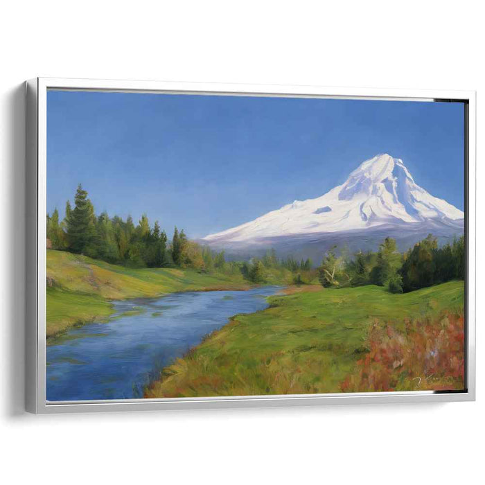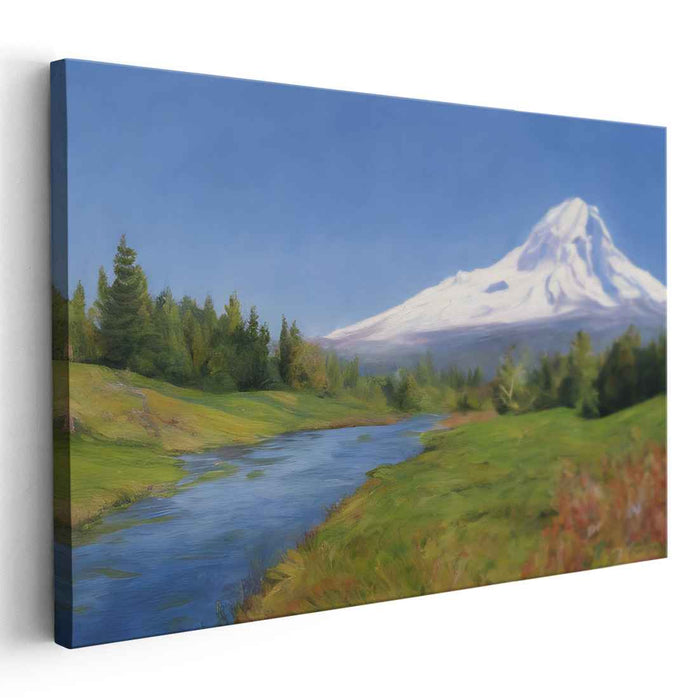 Decorate your walls with this high quality Realism Mount Hood art print on canvas. Whether you hang it in your living room, bedroom or office, this artwork is sure to add a touch of beauty and color to your room.