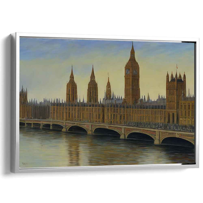 Embrace the regal beauty of London with this museum-quality canvas art print. Elevate your decor with a touch of historical elegance and immerse yourself in the serene and reflective atmosphere of one of the world's most iconic landmarks. Make 'Regal Parliament Silhouette' a centerpiece of your collection and let its timeless charm captivate your senses every day.