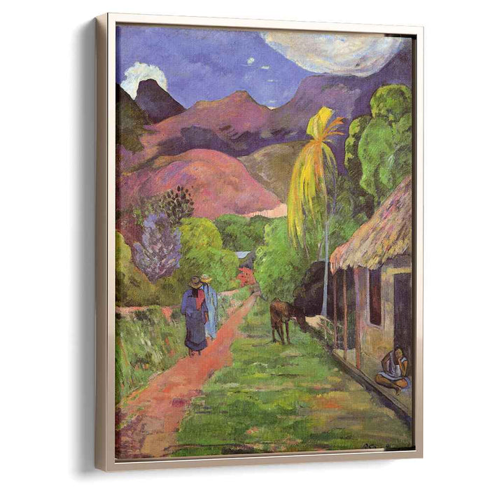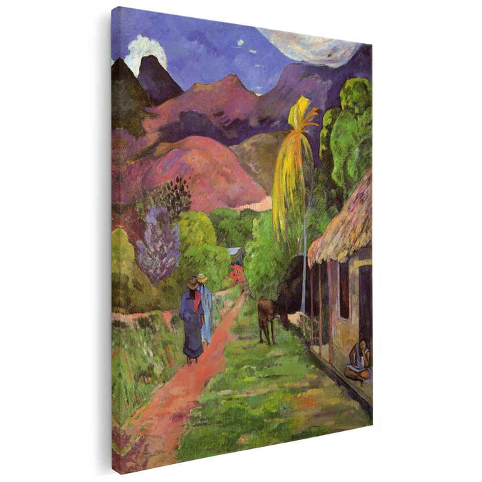 This museum-quality canvas print captures the vibrant colors and intricate details of Gauguin's original. "Road in Tahiti" becomes a focal point for contemplation and inspiration, creating a sense of exotic beauty and cultural diversity within your home. Fade-resistant inks ensure the painting's allure will remain undimmed for generations.