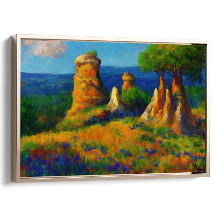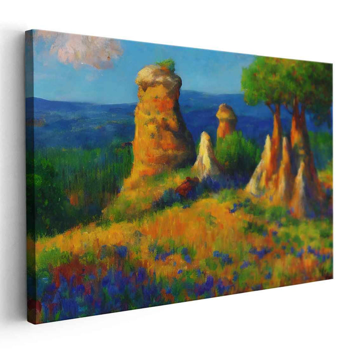 Introducing 'Rock Garden Blooms,' a mesmerizing landscape canvas art that transports viewers to a sun-kissed meadow teeming with vibrant wildflowers and captivating rock formations. This enchanting artwork immerses you in a serene and picturesque setting, where nature's beauty unfolds in a symphony of colors and textures.