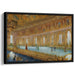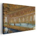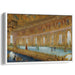 Introducing "Royal Whispers Amidst Shadows: A Glimpse into Regal Grandeur," a captivating interior scene canvas art that transports viewers into the lavish and opulent setting of a grand hall reminiscent of European palaces like Versailles. This exquisite artwork exudes grandeur and sophistication, showcasing intricate golden details that adorn the walls, framing large arched windows that bathe the space in natural light.