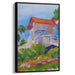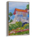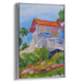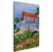 Introducing 'Rustic Hillside Retreat: Vibrant Landscape Canvas Art,' a mesmerizing piece that transports viewers to a serene and picturesque landscape featuring a charming rustic house nestled atop a hill. The focal point of this artwork is the house with its vibrant red roof, standing boldly against the soft blue sky, creating a visually stunning contrast that captivates the eye.