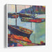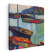 Introducing "Sailbrush Mystique Waves," a mesmerizing canvas art print that transports viewers to a serene harbor scene, where brilliantly colored boats rest against a tranquil backdrop, creating a visual symphony of vibrant hues and reflective waters. This artwork captures the essence of calm and contemplation, inviting onlookers into a world of vivid colors and gentle movements.