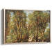 Introducing 'Serene Woodland Gathering: A Romantic Forest Scene,' a captivating canvas art that transports viewers into a tranquil woodland oasis, suffused with the gentle glow of natural light. This enchanting artwork showcases a vast forest populated by towering, majestic trees that reach towards the heavens, their verdant foliage forming a serene canopy overhead.