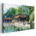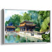 Introducing 'Silent Garden Retreat,' a mesmerizing canvas art that transports you to the serene beauty of a traditional Chinese garden pavilion, nestled amidst lush greenery and reflective waters. This exquisite piece captures the harmony between nature and architecture in a vibrant watercolor rendition.