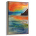 Introducing "Spectral Reflections Dance Across Waves," a mesmerizing watercolor seascape canvas art that captures the sublime beauty of a rocky outcrop meeting the tranquil waters under a vibrant, fiery orange sunset. This captivating piece bathes viewers in an ethereal light, inviting them to immerse themselves in a scene of serene majesty and dynamic energy.