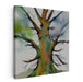 Introducing "Stardust Whispers in Misty Light," an enchanting abstract watercolor landscape canvas art print that mesmerizes viewers with its unique portrayal of a majestic tree in a dreamlike setting. This captivating artwork showcases a tall, bare tree with branches extending in a captivating dance, forming a mesmerizing web of lines that captivate the observer's gaze.