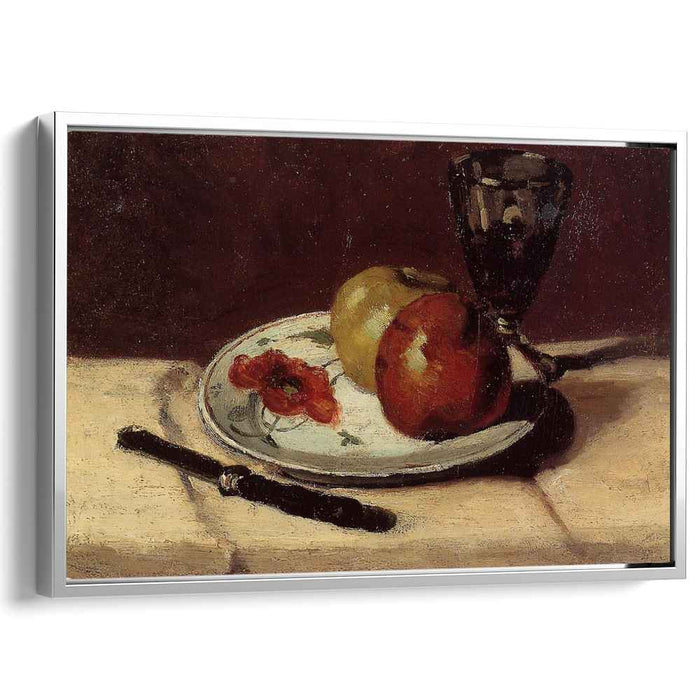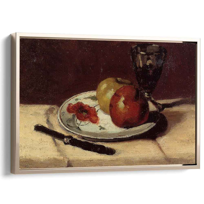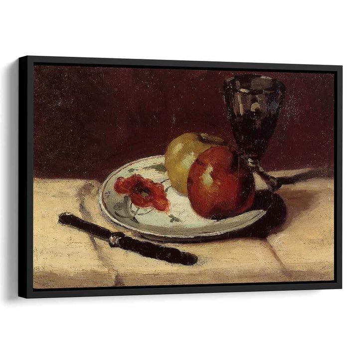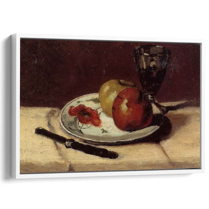 Immerse yourself in the tranquil beauty of Paul Cézanne's "Still Life Apples and a Glass" (1873), now available as a stunning canvas print. This masterpiece, created during Cézanne's early period, showcases his groundbreaking approach to still life painting.