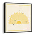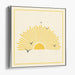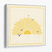 The vibrant yellow hue, symbolizing the sun, dominates the composition, exuding joy and optimism. In contrast, subtle shades of gray depict graceful birds soaring in the sky, adding a dynamic touch to the piece. The soft cream background enhances the sun's brightness, creating a serene juxtaposition.