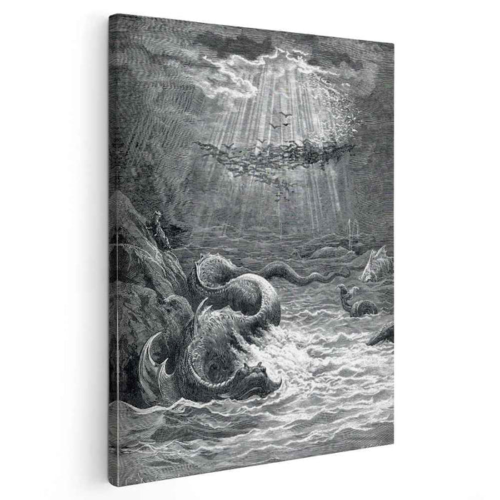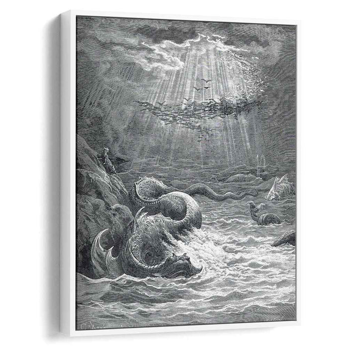Gustave Doré's "The Creation of Fish and Birds" (1868): A Divine Symphony of Creation and Cosmic OrderImmerse yourself in the grandeur of Gustave Doré's "The Creation of Fish and Birds," a breathtaking masterpiece that captures the very moment of cosmic genesis. This high-quality canvas reproduction invites you to witness the birth of life and the establishment of celestial order.