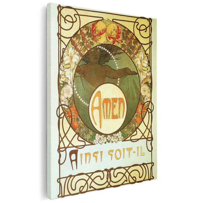 Immerse yourself in the ethereal beauty of Alphonse Mucha's iconic masterpiece, "The Pater" (1899). This elegantly rendered print captures the essence of Mucha's signature Art Nouveau style, now available on high-quality canvas to grace your walls.