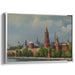 Introducing the "Time-Traveled Masterpiece: Historical Architectural Marvel" canvas art print, a captivating masterpiece that pays homage to the grandeur and historical significance of the Kremlin in Moscow. This detailed and vibrant painting meticulously portrays the iconic architecture and landscape of the Kremlin, featuring its majestic towers and domes set against a partly cloudy sky.