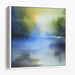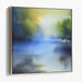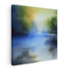 Introducing 'Tranquility's Verdant Canvas,' an enchanting canvas art piece that transports viewers to a realm of tranquility and calmness. This artwork skillfully employs watercolor techniques to craft a gentle, hazy landscape that appears suspended in the serene moments of early morning or twilight. The canvas showcases a delightful fusion of cool and warm tones, predominantly awash in azure blues, complemented by subtle touches of emerald green and soft yellow, reminiscent of a secluded lake or a meandering stream.