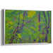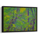 The artwork showcases a rich, leafy green as the primary color, accented by secondary hues of brown, yellow, and hints of blue peeking through the foliage, evoking the freshness of an early spring day. The interplay of light and shadow across the leaves creates a dynamic visual experience that blends realism with impressionism, inviting you to explore the depths of the forest.