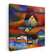 Introducing 'Vibrant Rural Landscape,' a captivating canvas art print that immerses viewers in a modern, semi-abstract depiction of a dynamic rural scene. This artwork pulsates with energy, featuring a cluster of uniquely shaped and colored houses nestled amidst undulating, richly hued fields, creating a visually striking composition.