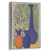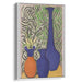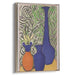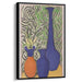 The artist employs bold, solid colors and thick outlines to delineate the vases, infusing the piece with a contemporary, almost pop-art vibe. The interplay of primary blue and orange hues against the secondary green backdrop creates a visually stimulating experience. This modern still life would make a striking addition to any contemporary living room, dining area, or office space, injecting a splash of color and a hint of modern sophistication.