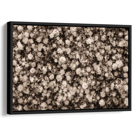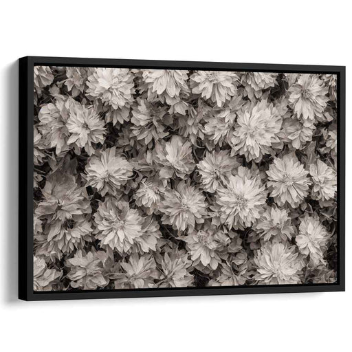 Introducing 'Vintage Petal Harmony: Sepia Tone Floral Canvas Art Print,' a mesmerizing piece that transports viewers into a world of intricate beauty and tranquility. This artwork masterfully captures a dense cluster of flowers in a monochromatic sepia tone, exuding a sense of nostalgia and timelessness.