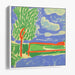 "Whimsical Countryside" pays homage to artistic giants like Henri Matisse and David Hockney, renowned for their bold use of color and simplified forms. The artwork's abstract yet recognizable shapes evoke a sense of joy, tranquility, and nostalgia, reminiscent of carefree days spent in nature.
