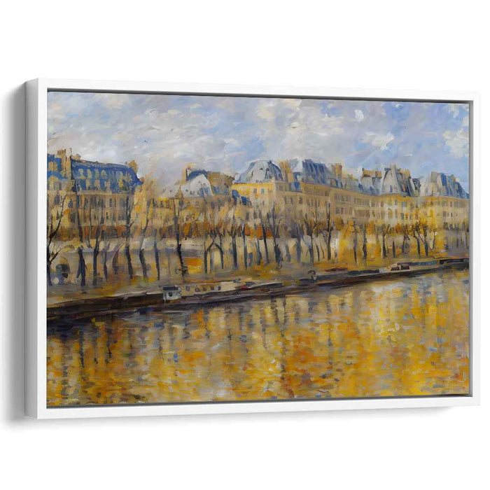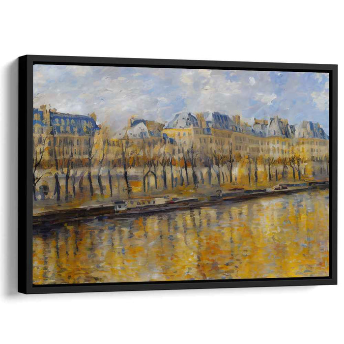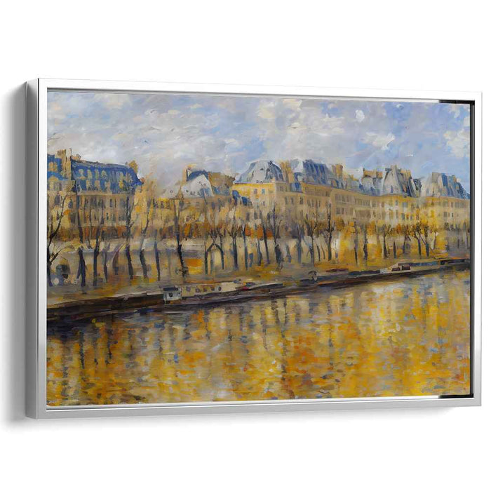 Introducing 'Whispers of Impressionistic Waterways: Impressionist View of Parisian Riverside,' a mesmerizing canvas art print that transports viewers to the serene banks of a Parisian river, capturing the essence of impressionism with its vibrant brushstrokes and reflective beauty. This artwork showcases the historic architecture of Paris reflected in the gentle flow of the river, creating a captivating scene that exudes tranquility and artistry.