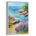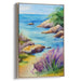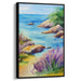 The foreground of this artwork is adorned with lush, vibrant lavender blooms and verdant greenery, injecting life and vivid color into the serene panorama. The artist's delicate and fluid brushstrokes imbue the water with a dreamy quality, almost inviting you to dip your toes into the tranquil scene. Playing with light and shadow, the artist masterfully enhances the depth and realism of the seascape, creating a mesmerizing visual experience.